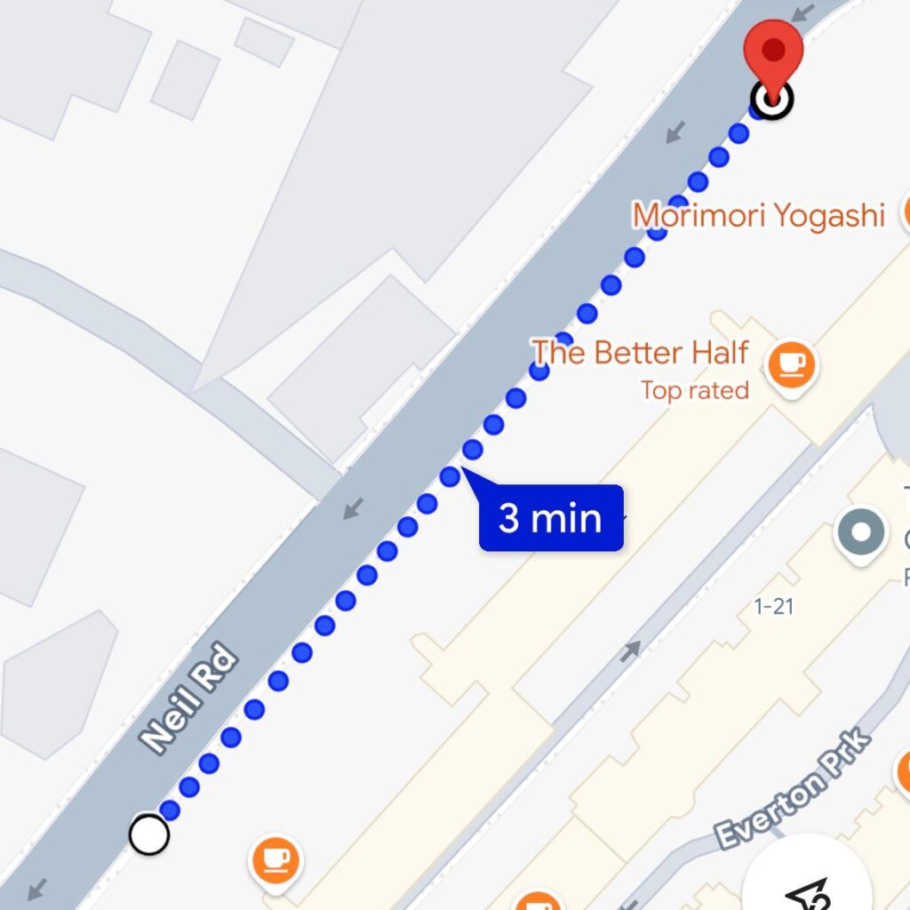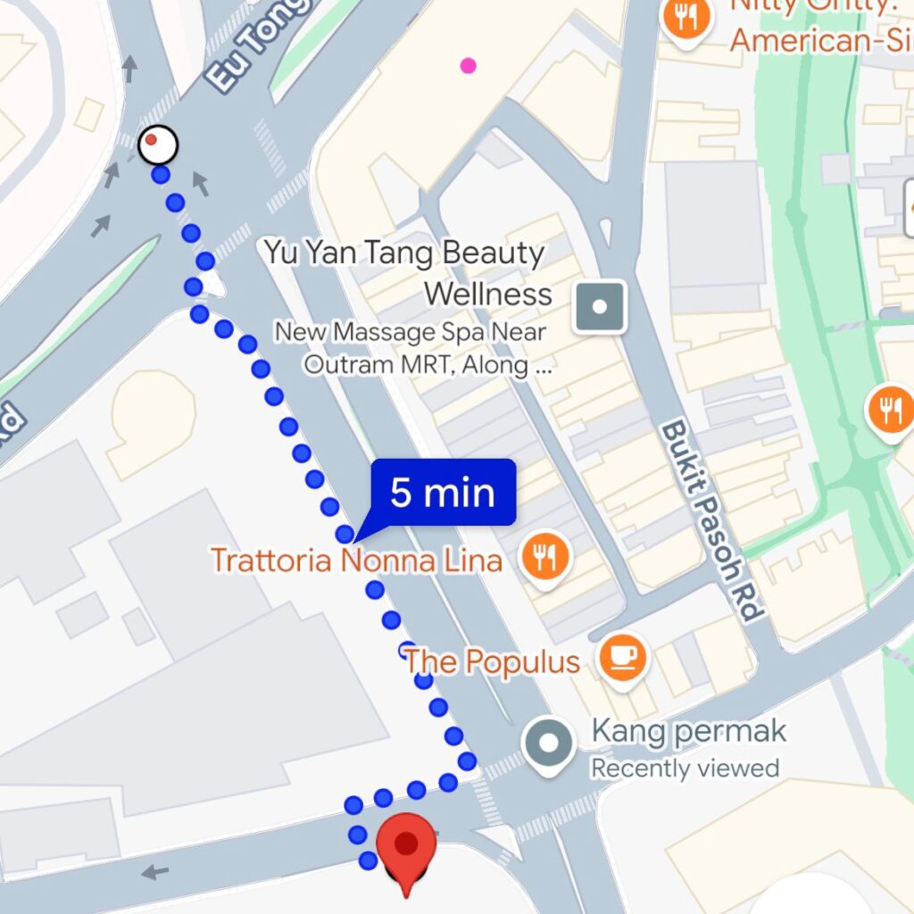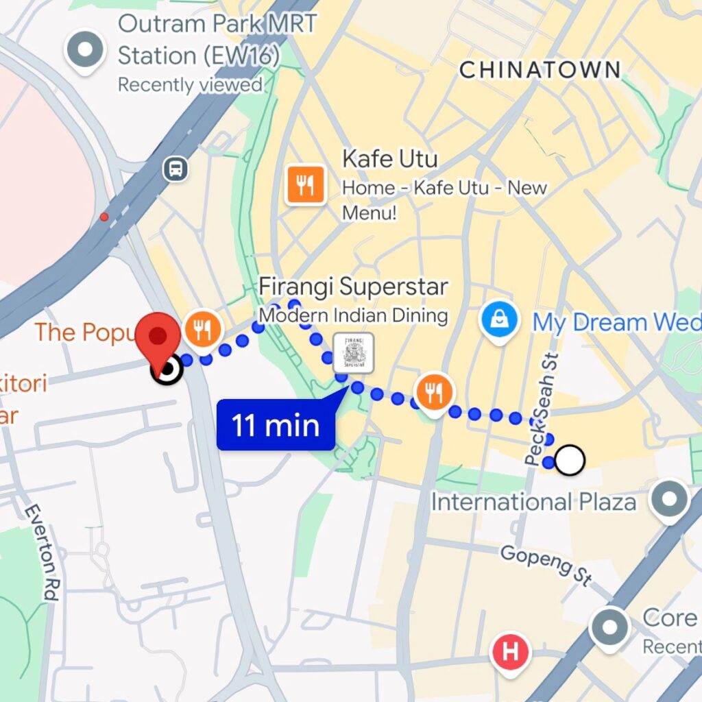11 minute walk from Tanjong Pagar MRT down Craig Road and Neil Road.