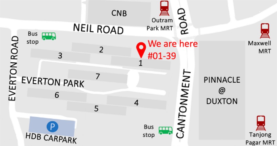 We are conveniently located at 1 Everton Park, near Outram Park, Tanjong Pagar and Maxwell MRT stations. Walking distance from The Pinnacle @ Duxton, The Beacon, Cantonment Primary School, Spottiswoode Suites, Sky Everton and HDB Cantonment.